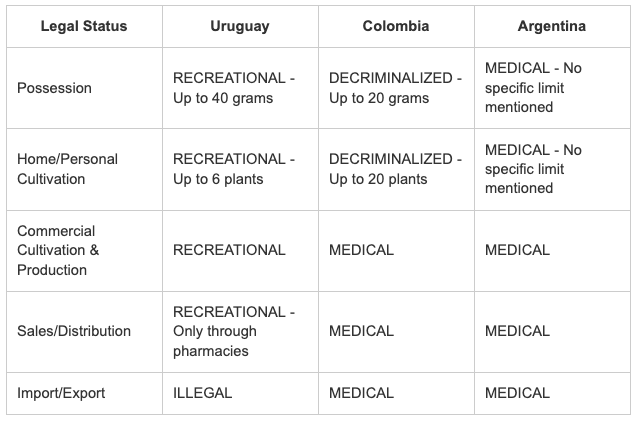 The state of cannabis in Uruguay, Colombia, & Argentina