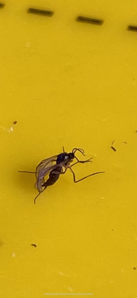 Fungus gnats are most commonly seen right after you water your plants. They primarily live in the top layer of the soil, and feeds stir them up until the water level normalizes in your substrate. Fungus gnats are often confused with Root Aphids. Fungus Gnats have a very defined abdomen and thorax, and their wingspans are proportional to their bodies.